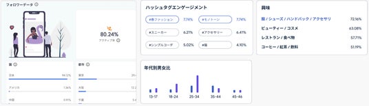 ※Astreamの管理画面では、フォロワー属性やエンゲージメントデータなど、インフルエンサー選定に役立つさまざまな分析データを確認することができます。