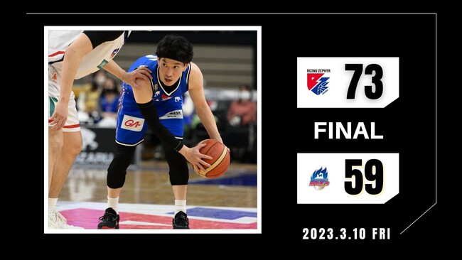2023年3月10日(金)に開催されましたBリーグ第25節【ライジングゼファーフクオカvs.青森ワッツ】において“福岡73-59青森”の結果となりましたことお知らせいたします。