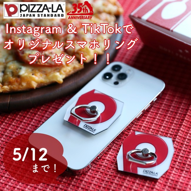 株式会社フォーシーズ(本社:東京都港区南青山 代表取締役社長:淺野幸子)が展開する宅配ピザ「PIZZA-LA」は、35周年を記念したSNSでのプレゼント企画 第1弾として、Instagram・TikTokのピザーラ公式アカウントにて各35名に、オリジナルスマホリングが当たるプレゼントキャンペーンを4月6日(水)から実施いたします。