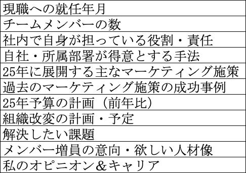 「日本のマーケター名鑑2025」で検索・閲覧可能な項目