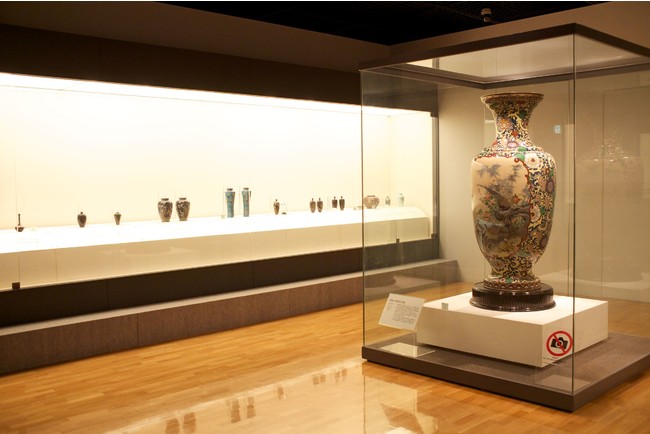 (展示鑑賞) 明治期に製作されたといわれる高さ152cmの「間取り花鳥文大花瓶」は、アートヴィレッジを訪れた際には必見の大作です。