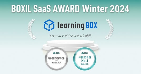 learningBOX株式会社(本社:兵庫県たつの市、代表取締役:西村洋一郎、以下「当社」)が開発・提供するeラーニングシステム「learningBOX」は、スマートキャンプ株式会社(以下「スマートキャンプ」)が主催する「BOXIL SaaS AWARD Winter 2024」のeラーニング(システム)部門で「Good Service」「お役立ち度No.1」に選出されました。当社は、2023年6月の「BOXIL SaaS AWARD Summer 2023」での初受賞以来、今回で連続7度目の受賞を果たしました。