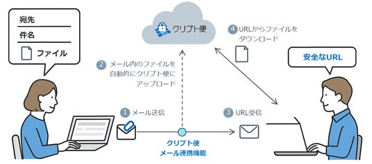 NRIセキュアテクノロジーズ株式会社(以下「NRIセキュア」)は、セキュアファイル転送・共有サービス「クリプト便」の新機能として、普段お使いのメールアプリからファイルを添付して送信するだけで、自動的にクリプト便を経由して安全にファイルを送信できる「メール連携オプション」(以下「本機能」)を追加し、本日、提供開始します。