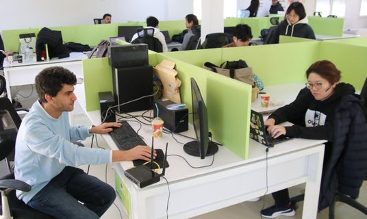 ▲oViceチュニジアのオフィスで、チュニジア、韓国、日本所属の社員が仕事をした際の様子