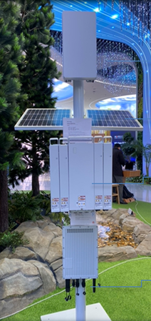 屋外型再エネ電源とナローバンドIoTシステムから成る統合型サイトファシリティ。通信機器とセンサー、組み合わせ可能なスマート給電ソリューションを一体化した構造で、自立稼働し保守不要。僻地の遠隔監視や都市部の防災ネットワーク利用を想定。インテリジェントソーラー発電ソリューション(iPV)は、MPPT98%以上の最高効率を実現。業界初の電気スライシング技術で管理をスマート化