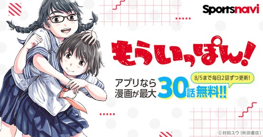 スポーツナビは、人気柔道漫画「もういっぽん!」を、秋田書店の協力を得て2024年8月16日(金)までの期間限定で無料配信します。毎日2話ずつ公開され、スポーツナビアプリなら合計30話を無料で楽しめます。