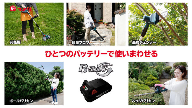 Na:ひとつのバッテリーで使いまわせるB-Share。