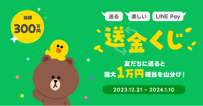 ・「送金くじ」の詳細は、こちら( https://linepay.line.me/promotion/transfer-kuji-202312.html )からも確認できます。