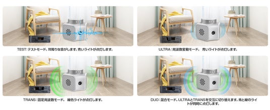 - 害虫の聴覚と神経系に働きかけ、不快感を与えて家から追い払います。