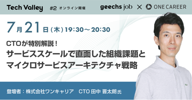そこで今回は、ITフリーランスの方を対象に、IT×HR領域にて事業拡大を行っている株式会社ワンキャリアのCTO 田中 晋太朗氏にご登壇いただき、ベンチャー企業が直面したシステムにまつわる組織課題とマイクロサービスアーキテクチャ戦略について解説いただきます。