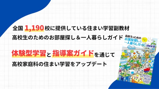 お部屋探しのリーディングカンパニー株式会社CHINTAI(本社:東京都港区 代表取締役社長 奥田倫也、以下CHINTAI)は、高校生にお部屋探しや一人暮らしについて理解を深めてもらうための副教材『高校生のためのお部屋探し&一人暮らしガイド』の内容をアップデートしました。あわせて、副教材を活用して授業を行いやすくするための指導案ガイドを新たに作成しました。