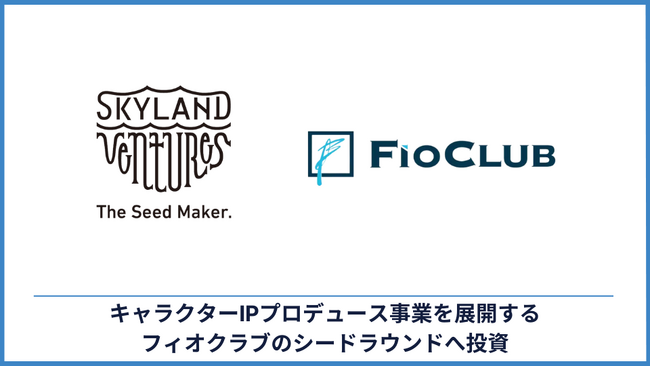 Skyland Ventures(本社:東京都渋谷区、パートナー・CEO:木下慶彦、以下SV)は、キャラクターIPプロデュース事業を展開する株式会社フィオクラブ(本社:東京都目黒区、代表取締役:長澤拓也)のシードラウンド総額約2.3億円にリードインベスターとして参加したことをお知らせいたします。
