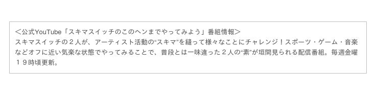 『スキマスイッチのファミ劇でもやってみよう』番組特設サイト:https://club.fami-geki.com/information/3fnzE
