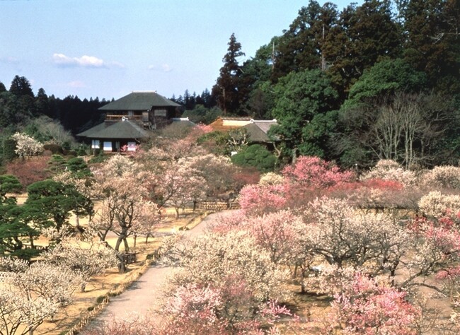 金沢の兼六園・岡山の後楽園とともに日本三名園のひとつに数えられる水戸の「偕楽園」。天保13年(1842年)、水戸藩第9代藩主徳川斉昭によって、「領内の民と偕(とも)に楽しむ場にしたい」という想いから開園されました。園内には約100品種・3,000本の梅が植えられ、早春には多くの観梅客でにぎわいます。2月中旬から3月下旬にかけての「梅まつり」を皮切りに、桜、つつじ、秋には萩、初冬には二季咲桜、と1年中四季の花々が園内を彩ります。