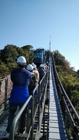 スロープカーの線路に沿うように設置されている点検用通路、通称「キャットウォーク」。一般のお客様は立ち入ることができない通路ですが、特別にスロープカー中腹駅舎から山頂駅舎まで続くキャットウォークを開放します。毎回、すぐに満員となる大人気イベントです。この機会に普段は味わえない“スリル”と“絶景”をぜひご堪能ください。