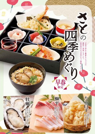 国内208店舗を展開する「和食さと」では、旬の食材「牡蠣」や、近畿大学水産研究所が開発したハイブリット魚種「鰤平(ぶりひら)」、そしてたらの白子など旬の海鮮食材をふんだんに使用した季節限定メニューを販売します。