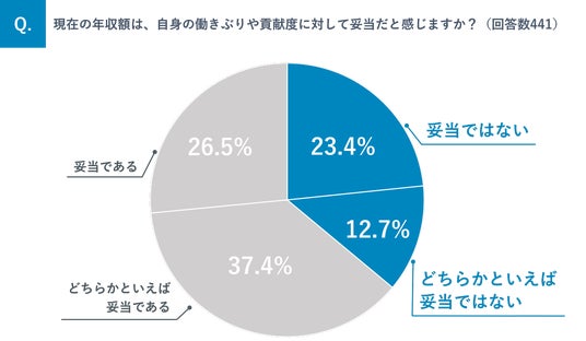 年収 2,000 万円以上の勤務医が 2 割以上の高収入である一方、自身の働きぶりや貢献度に対して年収額が「妥当ではない」と回答した医師は 23.4%、「どちらかといえば妥当ではない」と回答した医師は 12.7%となり 36.1%の医師は年収に満足していない結果となりました。