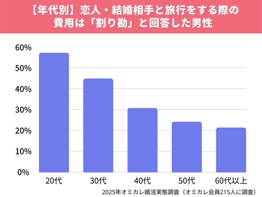 20代男性の6割近くが旅行費用は「割り勘が理想」と回答、男性が割り勘を理想とする傾向は若い年代ほど強い結果に