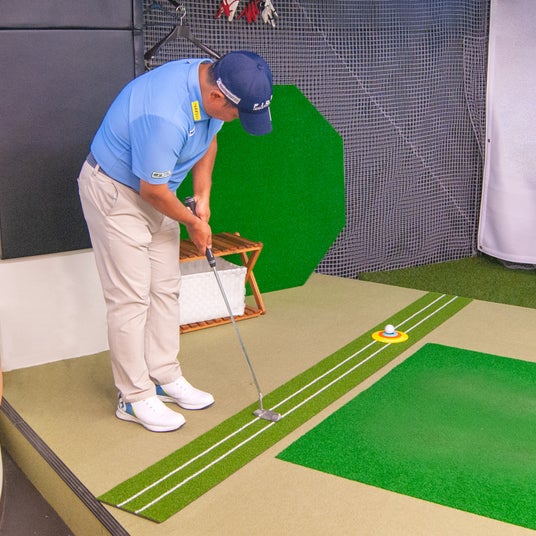 お持ちのパターマット、ご自宅のカーペットや庭に置くだけでおうち練習ができます。また、キャディバッグに入れておけば、ラウンド前のグリーンでの練習に使うこともできます。場所を選ばずにパター練習をすることができるので、忙しい日々のスキマ時間でもパターを極めるために有効です。