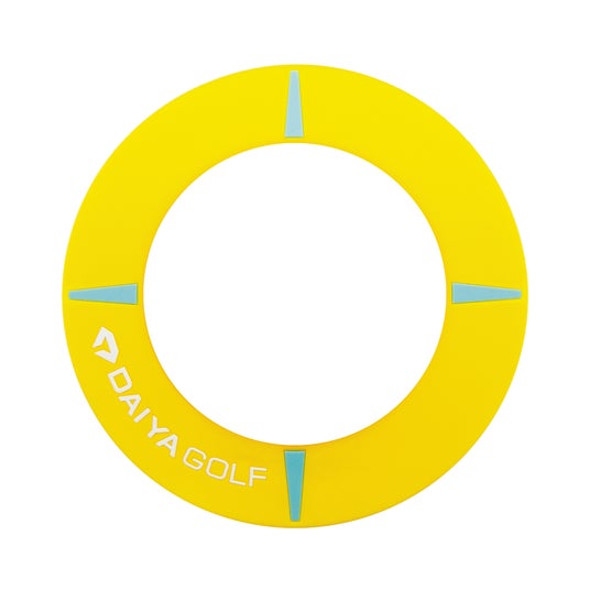 『ダイヤ3WAYターゲットカップ』は、カップの組み合わせを変えるだけでレベルの変更が可能です。実際のカップサイズである内径約10.8cmのノーマルカップ、内径約7cmの小型カップ、ゴルフボールより小さい内径約3.6cmの超小型カップの3レベルです。黄色いカップ部分には狙う時の目安となるガイドラインが4本引いてあり、明確に方向を定めることができます。