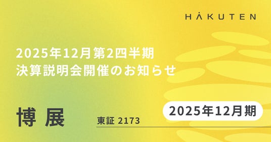 株式会社 博展(本社:東京都中央区、代表取締役社長執行役員COO:原田 淳)は2025年12月期第2四半期の決算説明会を会場およびオンラインにて開催いたしますので、下記のとおりご案内申し上げます。なお、決算発表は8月7日(木)を予定しております。