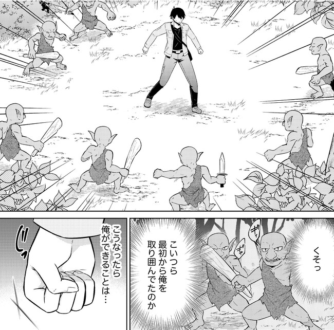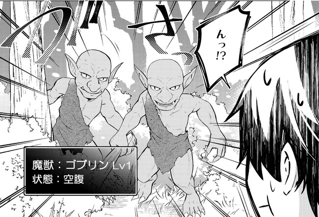 まさかのハードモード仕様に驚愕しつつもなんとか森を抜けようとさまよっていたところ、周囲をゴブリンに襲われてしまう。当たり前のように自分よりステータスが高いゴブリンに慌てて逃げだすも、大量のゴブリンに囲まれてしまう。