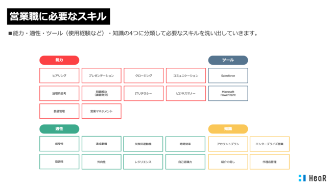 また、営業職人材の見極めで苦戦する「ポータブルスキル」の種類を言語化し、その見極方法も提案します。