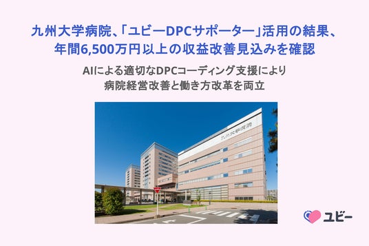 「テクノロジーで人々を適切な医療に案内する」をミッションに掲げるUbie株式会社(本社:東京都中央区、共同代表取締役:阿部吉倫・久保恒太、以下「Ubie」)は、国立大学法人九州大学 九州大学病院(所在地:福岡県福岡市東区、病院長:中村雅史、以下「九州大学病院」)において、「ユビーDPCサポーター」を活用し、DPCコードの適正化を行った結果、年間6,500万円以上の収益改善効果と大幅な業務時間短縮の見込みを確認しました。本取り組みは、AIによる適切な診療報酬請求業務におけるDPCコーディング支援により病院経営を改善するとともに、医師や診療情報管理士の業務負担を軽減することで、働き方改革と医療の質向上の両立を可能にするものです。