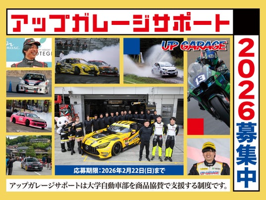 カー&バイク用品のリユース専門店「アップガレージ」を全国展開する株式会社アップガレージグループ(本社:神奈川県横浜市、代表取締役社長:河野映彦、東証スタンダード市場:7134)は、モータースポーツに励む学生を支援するプロジェクト「アップガレージサポート」の2026年度対象団体の募集を開始いたしました。