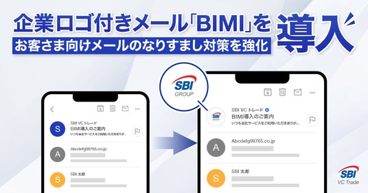 SBIホールディングス株式会社(本社:東京都港区、代表取締役会長兼社長:北尾 吉孝)の連結子会社で暗号資産交換業を営むSBI VCトレード株式会社(本社:東京都港区、代表取締役社長:近藤 智彦、以下「当社」)は、2026年3月30日(月)より、当社からお客さま宛に配信するメール上に、当社の企業ロゴを表示させる認証技術「BIMI」※を導入しました。当社は、本技術の導入により、お客さまが当社配信のメールと当社になりすましたメールを、当社ロゴの有無で判別できるようにすることで、フィッシング詐欺被害に遭うお客さまの数を1人でも減らすことを目指します。