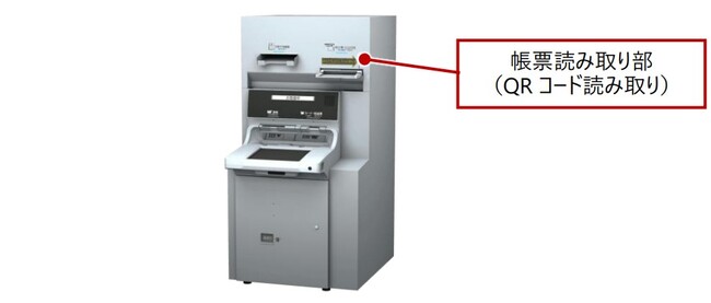 2018年販売開始の税公金収納対応ATMの帳票読み取り機能で、QRコード付き納付書を読み取り、納税額の決済処理を行います。なお、本ATMでは、QRコードが印字されていない納付書の処理にも対応することができ、QRコードの有無を本装置で自動判定し、利用者は意識することなく操作が可能です。