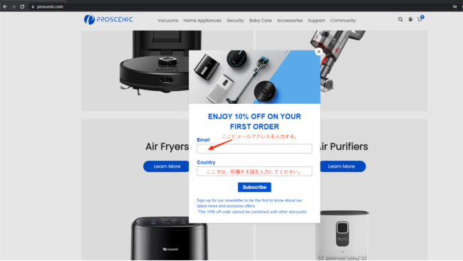 公式サイトに登録するだけで、初回注文時に10%オフの特典があります。