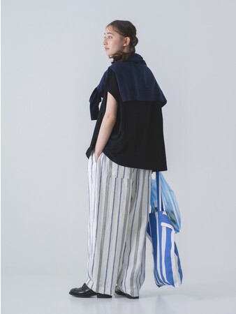ウエストゴムのイージー仕様。ゆったりとしたストレートシルエットで肌離れが良く、涼しく快適にご着用頂けます。同シリーズのシャツとのセットアップでのスタイリングもおすすめです。