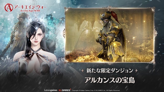 「アルカンスの宝島」は、海上に出現するボスモンスター「貪欲の残滓アウスト」の討伐をサーバー内のギルド同士で競い合い、最後の一撃を与えたギルドと、そのギルドが招待したギルドが「大海賊の隠れ家」へ入場する権利を獲得できる。討伐に成功したギルドと招待ギルドは、他のレルムのギルドとランダムにマッチングして結成されたチームで、「大海賊の隠れ家」のボスモンスター「オルドムの船長アルカンス」の討伐に挑戦することができる。討伐に成功したチームが所属するサーバーの全てのユーザーは、「アルカンスの宝島」へ入場する権利を獲得でき、ダンジョン内でモンスターを倒すことで様々な戦利品を獲得できるというコンテンツだ。