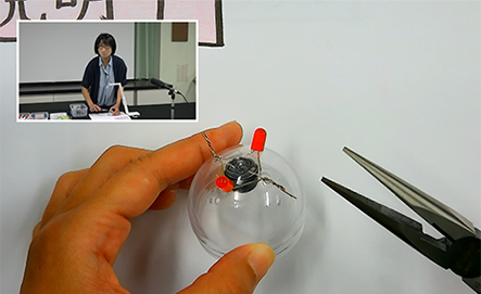 茨城高専在学生がアシスタントとして講座に参加し、実験のデモンストレーションをしたり、Zoomのブレイクアウトルームで受講者からの質問に答えるなど、受講者が楽しく参加でき、かつスムーズに講座が進行するようサポートしました。また工作を成功させるコツや応用方法等についてもアドバイスを行いました。