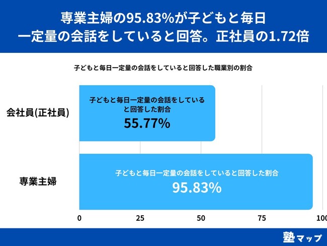 【専業主婦の95.83%が子どもと毎日一定量の会話をしていると回答。正社員の1.72倍】