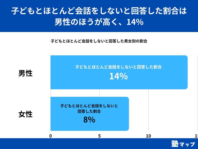 【子どもとほとんど会話をしないと回答した割合は男性のほうが高く、14%】