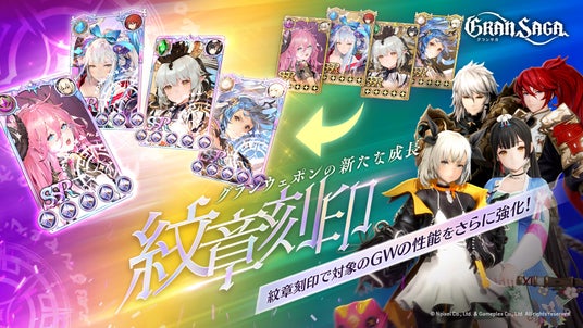 紋章刻印対象グランウェポンに、ジュンSSRGW「セルフィリス」、カイトSSRGW「スサノオ」、ユナSSRGW「ヨンノルブ」、レオンSSRGW「アイギス」が追加されます。