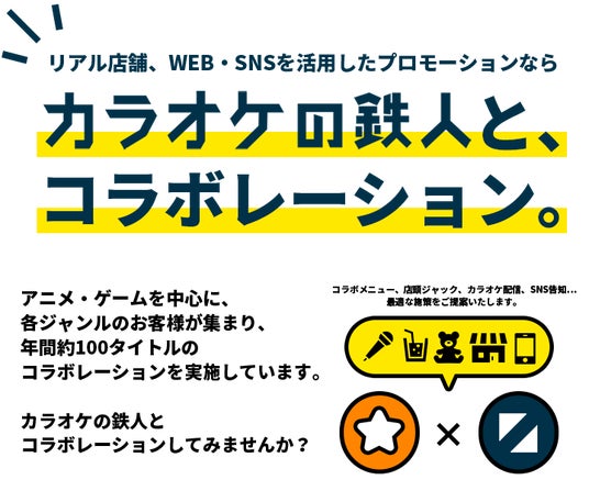 リアル店舗、WEB・SNSを活用したプロモーションなら、カラオケの鉄人とコラボレーションをしませんか?様々なメディアでご希望に合わせた施策をご提案します。
