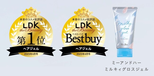 ※3 受賞商品「ミーアンドハー ミルキィグロスジェル」『LDK the Beauty』2023年4月号ヘアジェル部門にてベストバイを獲得