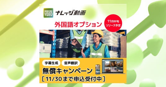株式会社L is B(エルイズビー 本社:東京都千代田区、代表取締役社長CEO:横井 太輔、以下L is B)は、現場のナレッジやノウハウを動画で共有できる企業向けサービス「ナレッジ動画(https://knowledge-video.com/)」 において、11月中旬より提供する「外国語オプション(外国語字幕生成・外国語音声翻訳)」の発表とともに、無償提供キャンペーンを開始したことをお知らせいたします。
