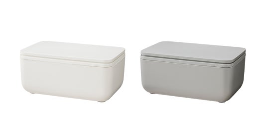 この度の「シートケース」リニューアルモデルは、フタのボタンをなくし、天面を押すと開けられる機構にすることで操作性が向上しました。パッキン形状などを変更することで密閉性が向上、さらにシート補充時にフタが取り外しやすくなりました。カラーはホワイトとグレーの2 色からお選びいただけます。