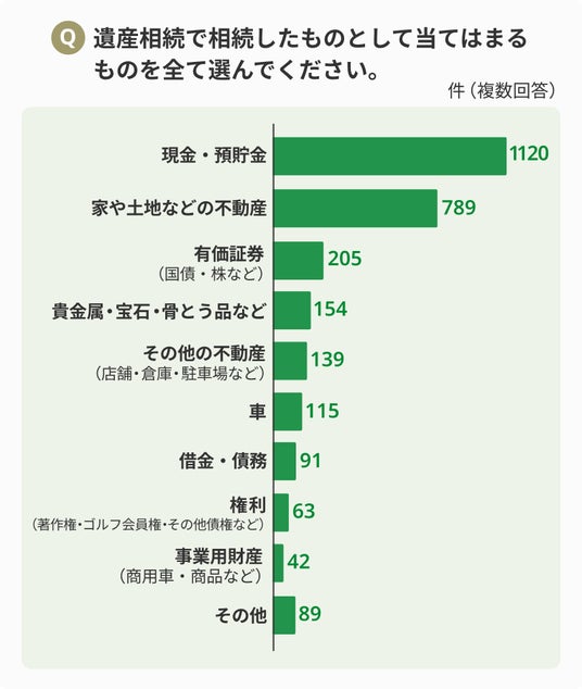 過去に「相続を経験した方1,558人」を対象として、相続した財産を調査したところ、「家や土地などの不動産」は、「現金・預金」に次いで2番目に多かった相続財産でした。