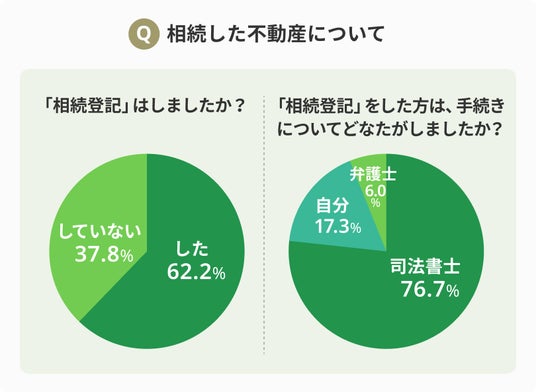 相続登記を行った割合は62.2%に留まり、多くは司法書士へ依頼した