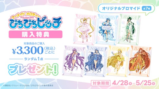販売期間中(2025/4/28~2025/5/25)、対象商品を3,300円(税込)お買い上げごとに購入特典【オリジナルブロマイド(全7種)】をランダムで1点プレゼントいたします。
