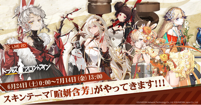 株式会社サンボーンジャパンは、スマホ向け戦略型シミュレーションゲーム『ドールズフロントライン(以下、「ドルフロ」)』において、チャイナドレスの新スキンテーマ『暄妍含芳(けんげんがんほう)』が6月24日(土)0時より追加されることをお知らせいたします。