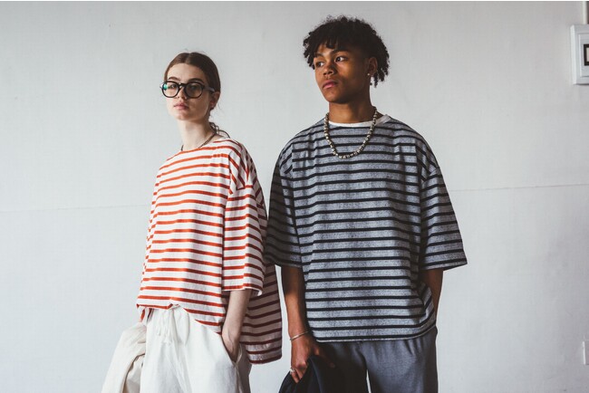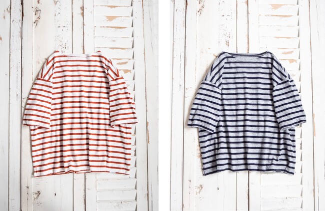 [ UpcycleLino ] BASIC 天竺ボーダーバスクボーダーTシャツ/14,300円