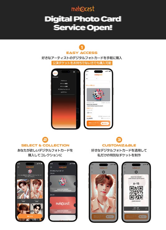 デジタルフォトカードサービスはmahocast QRチケットを、販売している画像や動画にカスタマイズし、自分だけのチケットを所持することができるmahocastの新サービスである。