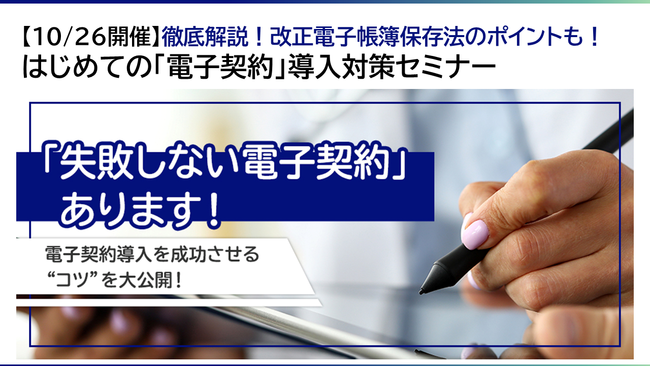 NECは、2022年10月26日に中堅・中小企業の人事・総務・法務・情シス担当者を対象に「はじめての『電子契約』導入対策セミナー」を開催します。電子契約導入時の法的要件や注意点、最適なソリューションを徹底解説します。