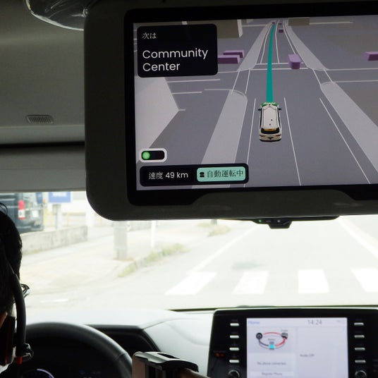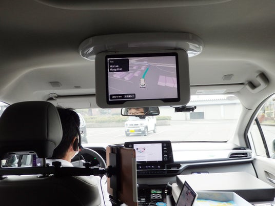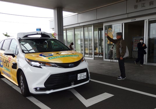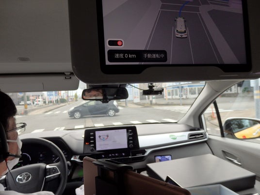 全国的にも珍しいバン型乗用車による福井県坂井市での自動運転。公共交通対策課によると、実証走行の目的は、市内で利用者が増えている「イータク」の増車対応や公共交通の運転者不足解消、将来的な持続可能な交通手段の確保などがあり、今回の走行を通じて自動走行中に手動対応があったかや、運行にかかるコスト、利用者の声から自動運転が受け入れられる社会受容性などを検証していく。イータクプラスの走行運営は、ソフトバンクとトヨタ自動車の合弁会社「MONET Technologies(モネ テクノロジー」(東京)が担い、トヨタの車両を使用。今回は「レベル2」(部分運転自動化)のため、地元のケイカン交通の運転手が同乗している。車体には上部、前後など計18個の多種多様な専用カメラが装備され、360度で見渡している。